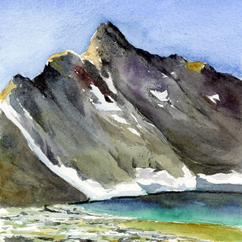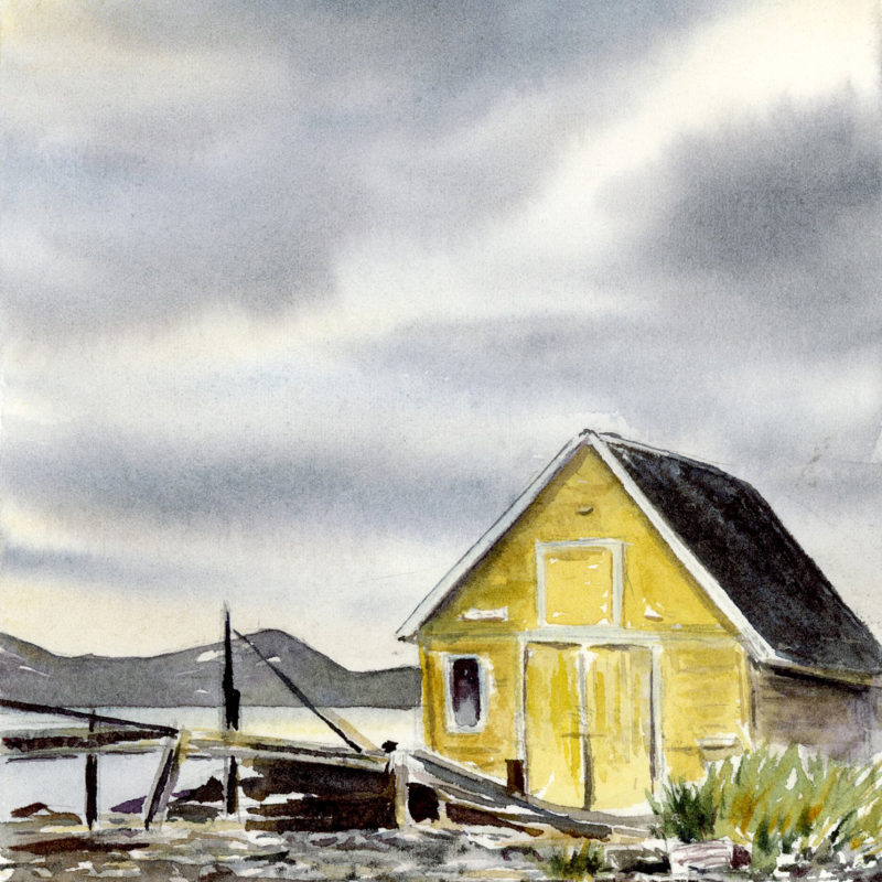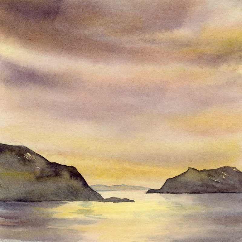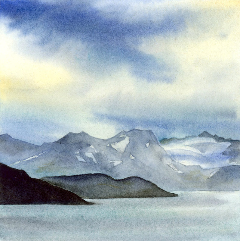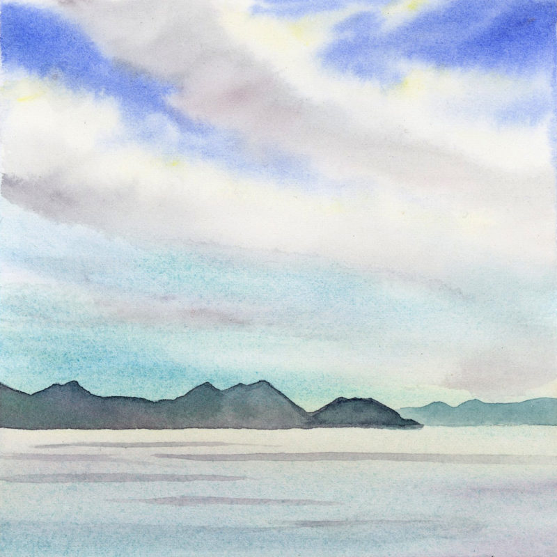 The exhibition this month at Bainbridge Arts & Crafts Gallery includes a selection of 5” x 5” watercolors from my time in Norway for my 2022 artist-in-residency with Starlight and Storm. Located on the island of Arnøya at 70 degrees N. Singla is a historic waterfront homestead that includes a small lighthouse, boathouse, barn, main house, and assorted outbuildings. I loved watching the water with its constantly changing light and observing the contours of the mountainous islands. During the residency, I completed a series of twelve 5” x 5” watercolors inspired by the landscape, seven of which are on display in Winslow through November 2nd. The originals are available for sale, and I am hoping to offer prints soon!